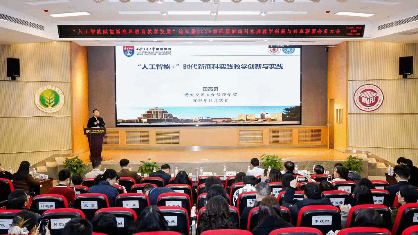 本次会议以“人工智能赋能新商科,构建教育创新共同体”为核心主题,由陕西高校工商管理教指委、新商科实践教学创新与共享联盟、教育部大数据管理课程联合主办,西北农林科技大学经济管理学院承办,广州市福思特科技有限公司、上海高顿教育科技有限公司协办,汇聚了全国高校专家学者、产业领袖及师生代表共话商科教育转型。会议期间,西安交通大学管理学院田高良教授作《“人工智能 +”时代新商科实践教学创新与实践》主题报告,深度剖析了人工智能技术与新商科实践教学融合的核心逻辑、实施路径与创新方向,从“3456 模式”构建到产教协同机制创新,为与会者提供了兼具理论高度与实操价值的前沿指引,引发全场广泛共鸣。此外,西北农林科技大学经济管理学院分享了农经管工信学科交叉融合的发展经验,多位高校教师围绕 “课程+项目”等创新育人模式展开研讨,企业代表则呼吁深化产教融合,推动标准共建、资源共创、成果共享,构建开放包容的新商科教育生态。