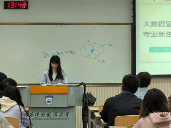 金秋十月,丹桂飘香。在这充满收获与期许的时节,为帮助2025级大数据管理与应用专业新生快速建立专业认知、明确大学学习方向,2025年10月17日,西安外国语大学商学院大数据管理与应用系精心筹备的2025级本科生新生专业导入会在SD408顺利召开。商学院薛晋洁副院长、大数据系主任苏振兴老师,以及刘琴老师、朱美琳老师、刘睿老师、刘敏老师、张程泱老师等专业教师团队齐聚现场,与2025级该专业全体新生共同参与本次会议,会议由大数据管理与应用2501小班主任赵泽娇同学主持,为新生开启了专业探索的第一扇门!