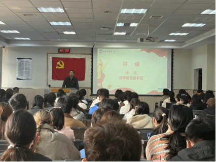 为深入学习贯彻党的二十大和党的二十届二中、三中、四中全会精神,切实加强入党积极分子培养教育工作,严把党员发展“入口关”,10月28日,商学院第69期入党积极分子培训班开班仪式在教学楼A区306顺利举行。校党委委员郑锐华出席,学院党委书记冯达、学生党支部书记及全体入党积极分子参加。开班式由组织员刘旭东主持。