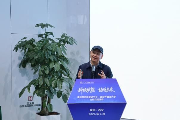 艾晨代表西咸新区及秦创原创新促进中心致辞。她介绍了秦创原作为陕西省创新驱动发展总平台,在科技成果转化、企业孵化、资源整合、人才对接等方面的核心功能,以及在服务外向型经济、助力企业国际化发展中的重要作用。她强调,西安外国语大学商学院的学科优势与秦创原的平台功能高度契合,期待后续合作为新区企业注入专业动能,完善涉外创新生态。