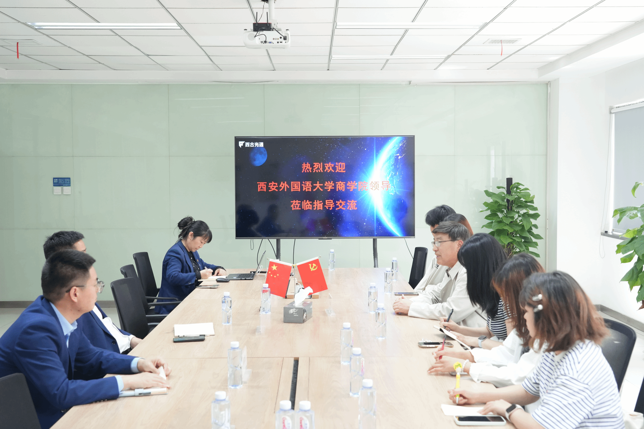 为深化产教融合、拓展学生实习就业渠道,推动校企合作向纵深发展,2026年4月16日,由西安外国语大学商学院白少君教授带领其研究生及本科生团队,前往西安西古光通信有限公司(以下简称“西古光通”)开展参观调研活动,近距离感受企业发展活力,搭建校企协同育人桥梁。
