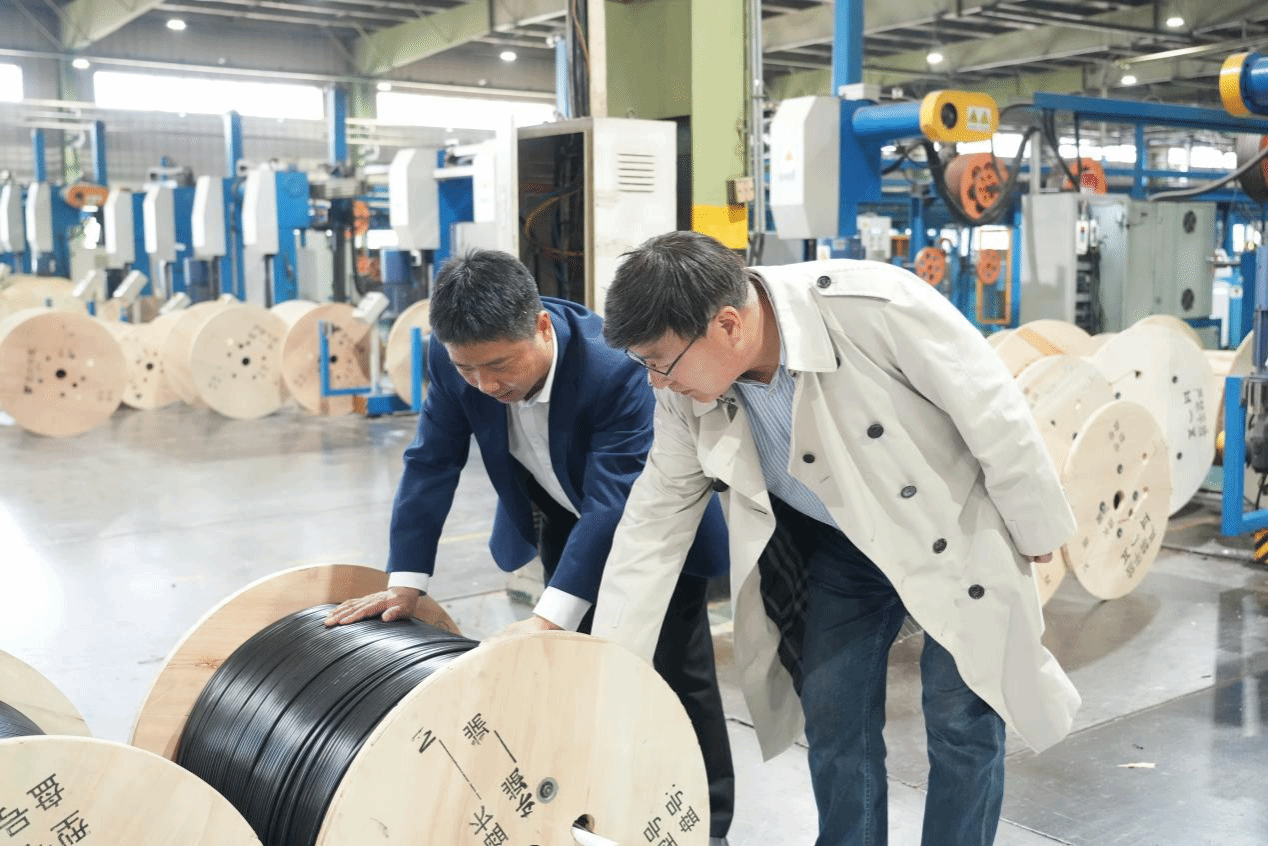 座谈结束后,在企业工作人员的带领下,师生团队走进西古光通生产车间,近距离参观了光纤光缆的生产、检测全流程。从光纤预制棒到光缆成品,从自动化生产线到质量检测环节,工作人员详细讲解了各环节的工艺标准与技术要点,展示了企业在生产过程中对质量的严格把控。同学们认真观察、仔细聆听,对光纤通信产品的生产工艺、行业技术标准有了直观的认识,也深刻感受到了企业精益求精的匠心精神与严谨高效的生产管理模式。